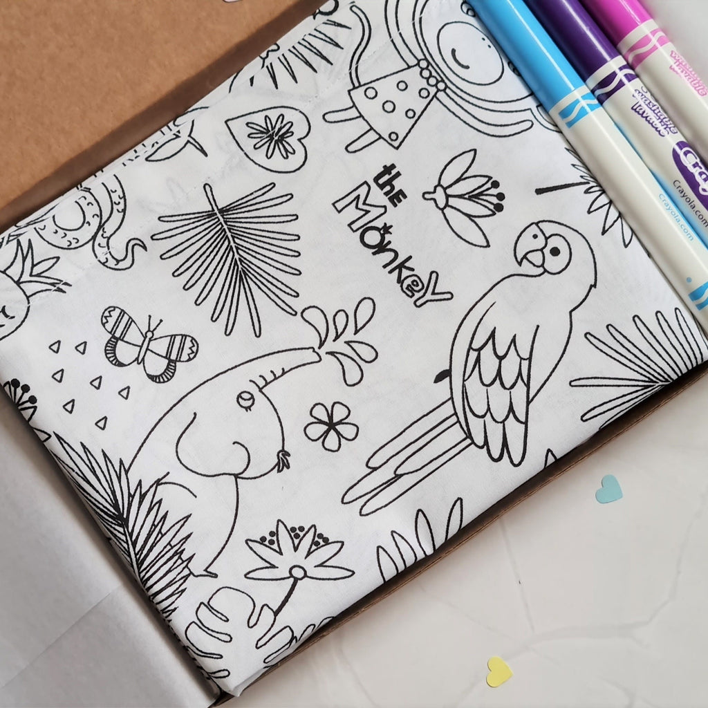 Unique Safari animals kids colouring tablecloth with an eye-catching Jungle animal print. This is an ideal craft kit for boys and girls of all ages to entertain for hours and unleash their creativity in their own way!