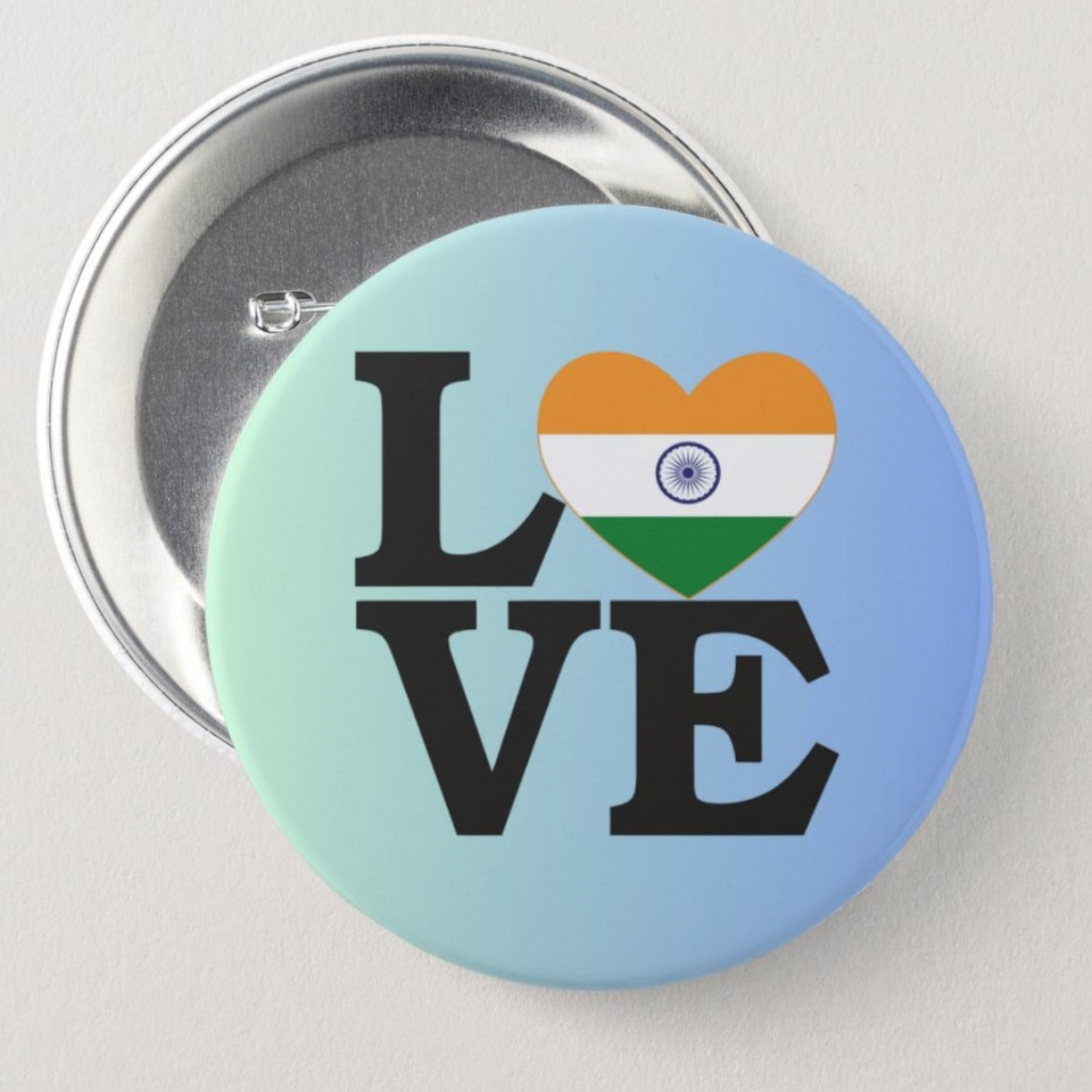 Love India Flag Button Pin Badge for National Celebrations