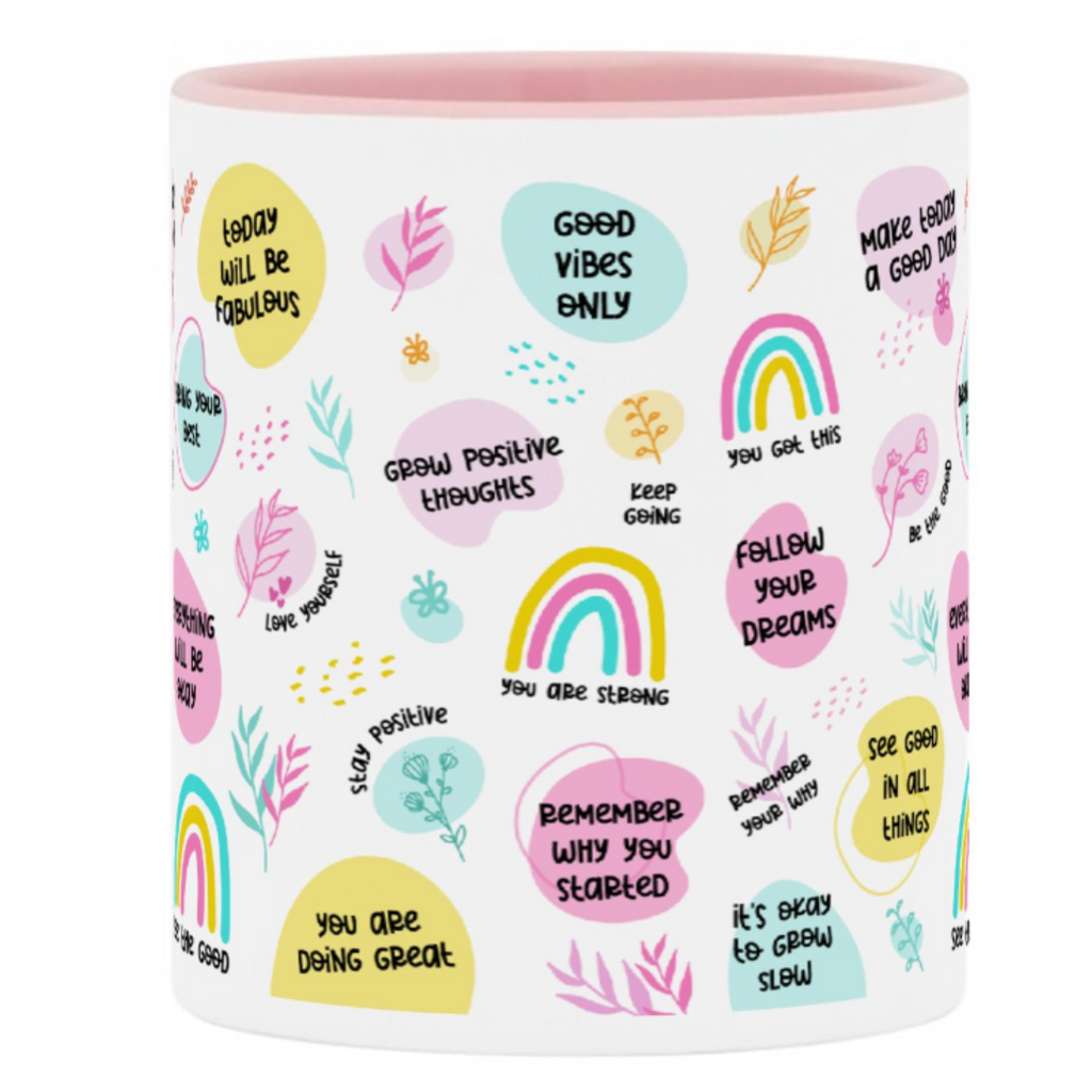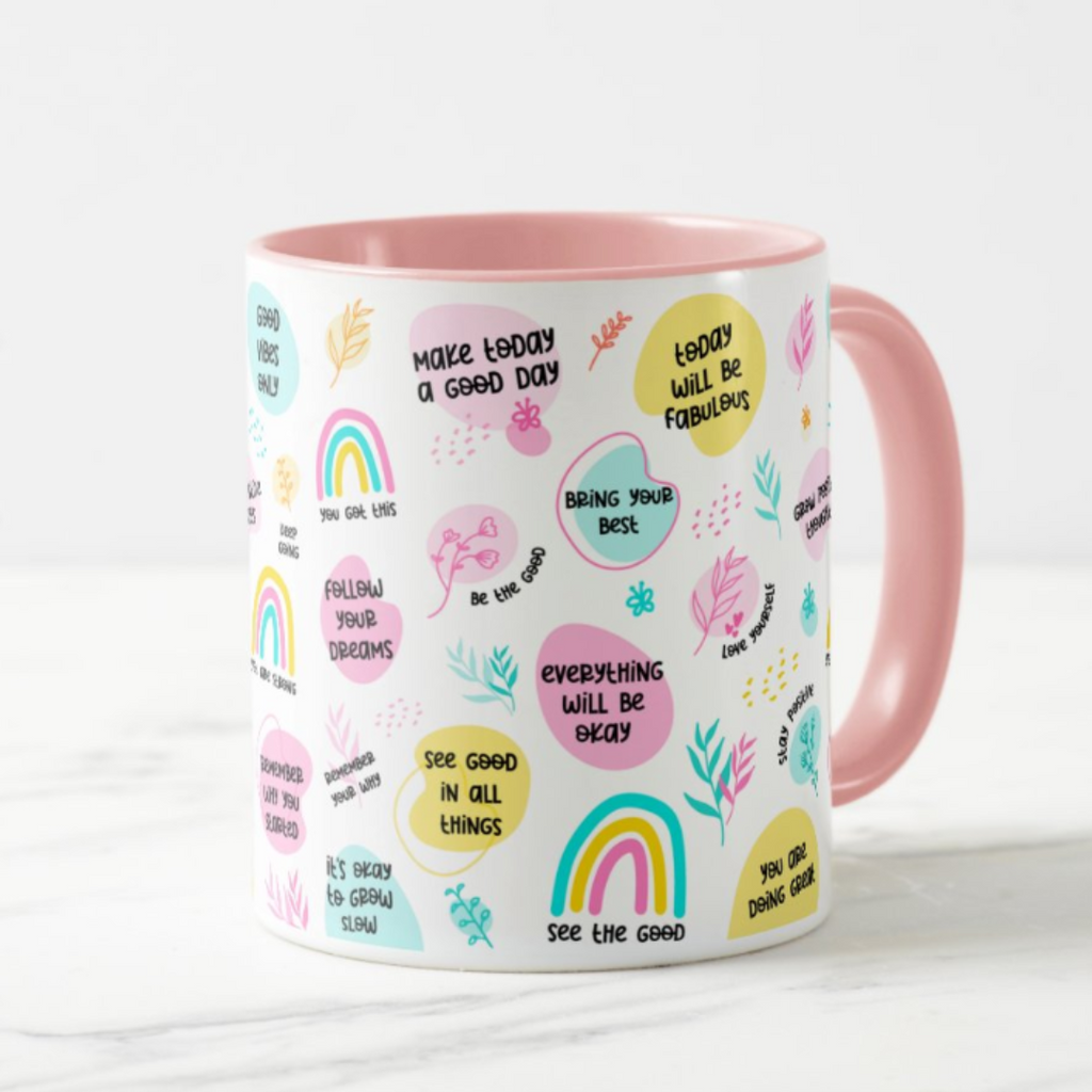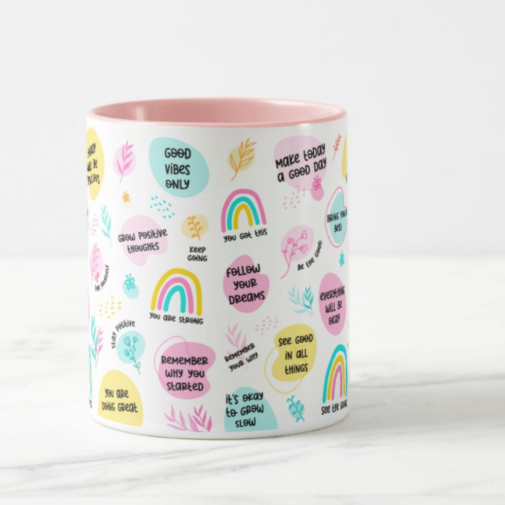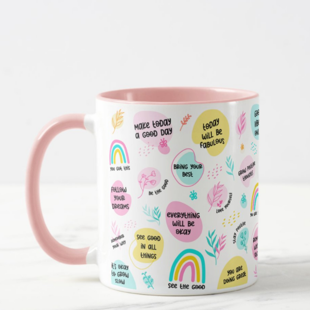 Inspire success and positivity with our 11oz Ceramic Motivational Text Mug, perfect for back-to-school or college girls. This captivating mug is adorned with motivating text all over, meticulously designed and handcrafted to uplift spirits.