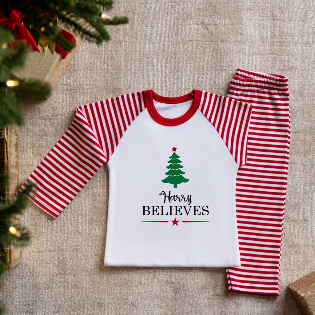 Our Personalised Christmas Pyjama set is made from ultra-soft cotton fabrics to keep your little one cosy this festive season. Christmas pyjamas are perfect for children to wear over the Christmas season, featuring our exclusive seasonal theme set of pyjamas you can customize with your choice of name. Children will love their personalised outfit which is styled for festive using trendy and bright prints.